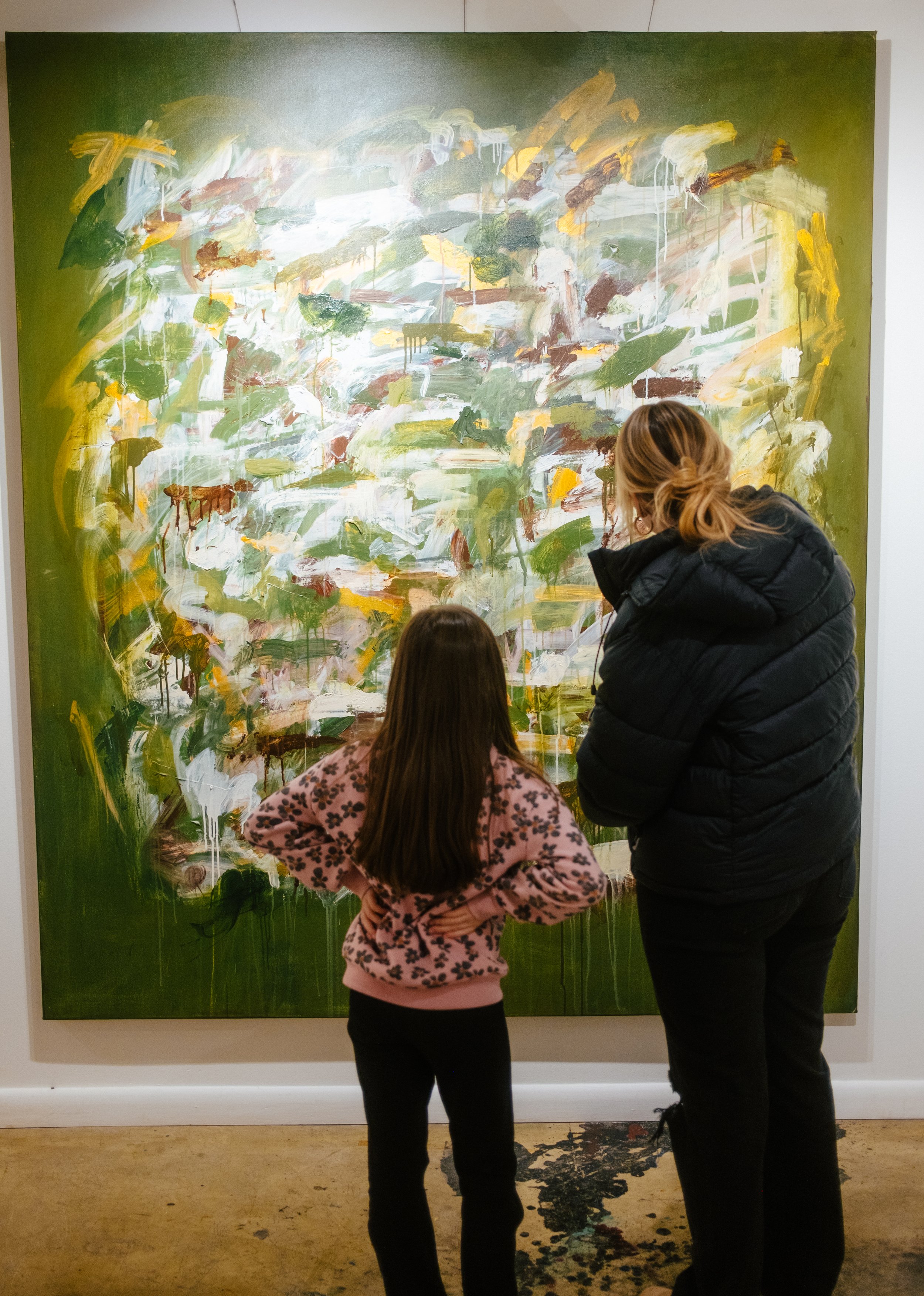 Peyton Dollar’s debut solo exhibition, FORGOTTEN LANDSCAPES, transformed Main Street Gallery into a dense, dreamlike world of forests, castles, and seething crowds of creatures. Across 14 paintings of varying scale, Dollar mixed whimsical woodland characters with abstracted flesh and infernal, almost carnivalesque architectures to create landscapes that feel both magical and menacing. Large canvases anchored the show with teeming scenes of animal masks, bones, and hybrid bodies, while more intimate works offered quieter but equally charged glimpses into this storybook underworld. Throughout, a lush, gestural handling of paint and saturated color carried a psychological weight of desire, fear, and instinct surface as cartoonish figures that melt, merge, and stare back at the viewer. The exhibition marked Dollar’s emergence as a painter willing to lean fully into darkness and fantasy, using surreal narrative imagery to establish himself within the Nashville art scene.